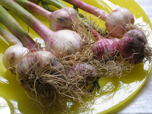 When fresh garlic is in season, I crave garlic mayonnaise. Aioli is its name in French. The Italians call it maionese all’aglio. You can get fresh garlic in New York throughout the summer. It matures and forms cloves as the season progresses, but it stays wonderful. It is hard-necked, recognizable by a firm stalk that runs up through its center. It doesn’t dry well, so you can’t store it like the papery and often bitter soft-neck varieties you find in grocery stores year round. If you try to dry it, it just rots. So you’ll only be eating it fresh. It does take on a stronger flavor as it matures, developing full cloves and a thicker skin, but it continues to be heaven. I look for the purple-tinged Italian rocambole variety. It’s lovely and has a good kick.