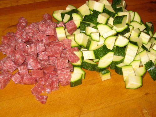 I like cutting the sausage and the zucchini into little cubes, about the size of the indentation in the orecchiette, so that they nestle in nicely and give the dish a pretty look.