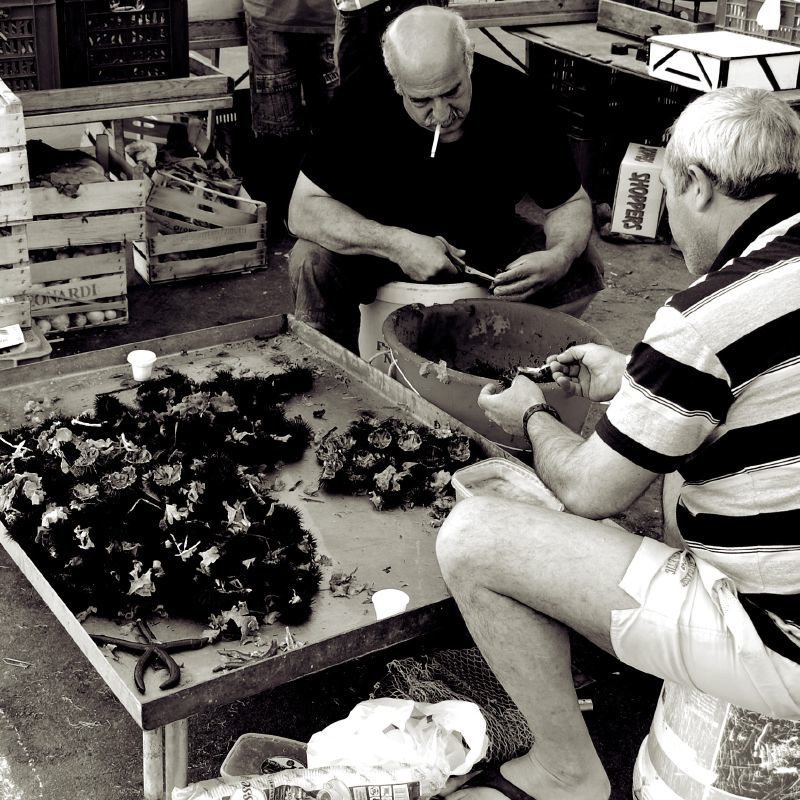 At most of these places you can also order ricci lightly cooked and tossed with pasta. I love them that way. Just a quick sauté with a few standard Sicilian ingredients produces a miraculous dish. The freshly plucked ricci roe is usually flash-seared in a skillet with olive oil, garlic, white wine, a touch of tomato (or not), and hot chili flakes, and then tossed with very al dente spaghetti. The sweet but slightly bitter taste of the sea urchin, raw or cooked, seems perfect to my taste buds.