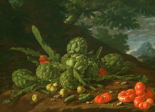 Still Life with Tomatoes, Artichokes, and Green Beans, Luis Egidio Melendez, 1716-1780.