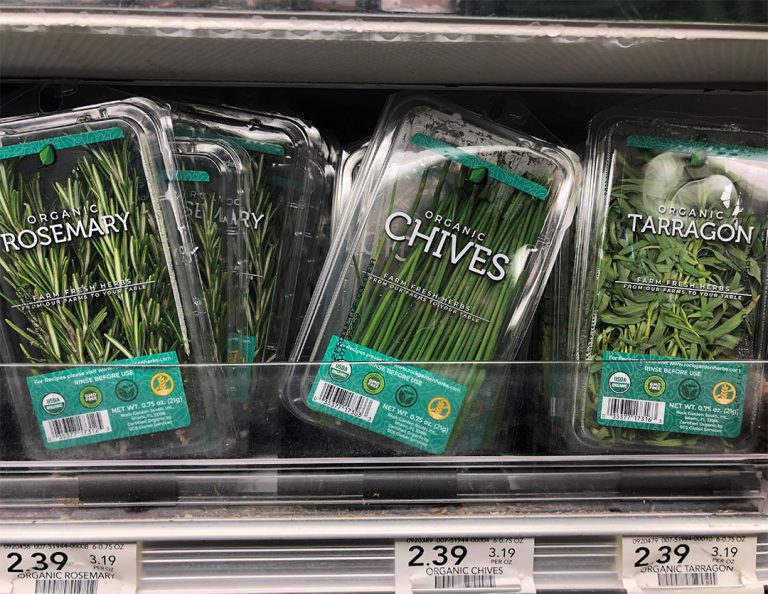 When they’re not all moldy or dried out, or moldy and dried out, the herbs I buy at the supermarket usually taste okay, but being mass-produced they’re often on the mild side, compared with ones you grow yourself or buy at farm stands. That doesn’t make them bad. You just have to be sure to always taste a leaf to determine how much you’ll need. You might want to add a bit more to get the effect you want.