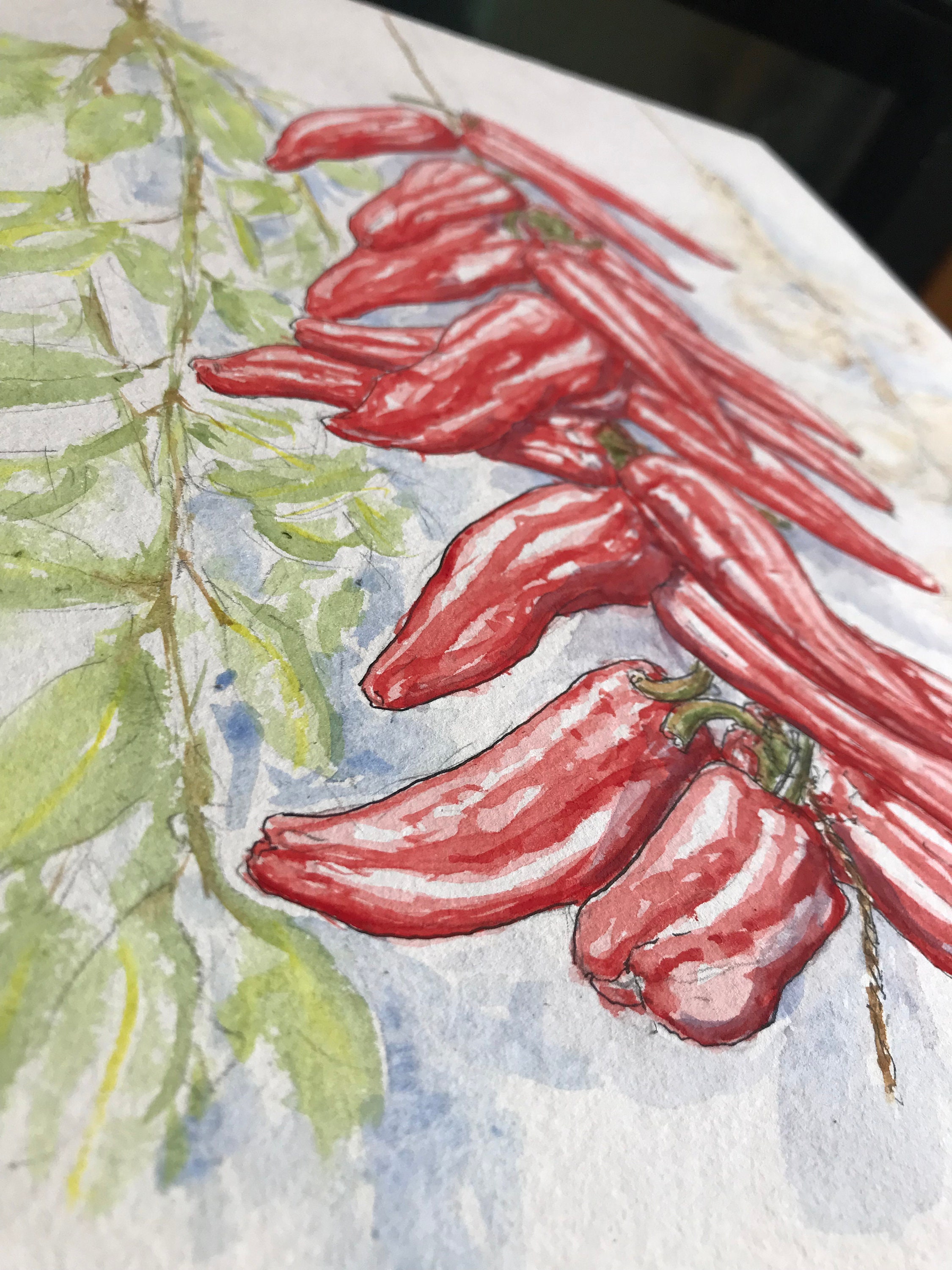 The espelette pepper at peak ripeness is an amazing color that appeals to me like few others. It’s not a fire engine red, but not dark ruby either, and nothing like a blood-red beet. It’s something in between, closer to the best lipstick shade for me and many Italian American types, and it might be described as rich red. I have synesthesia, and deeply pigmented red has always been the number five for me. This color screams five.