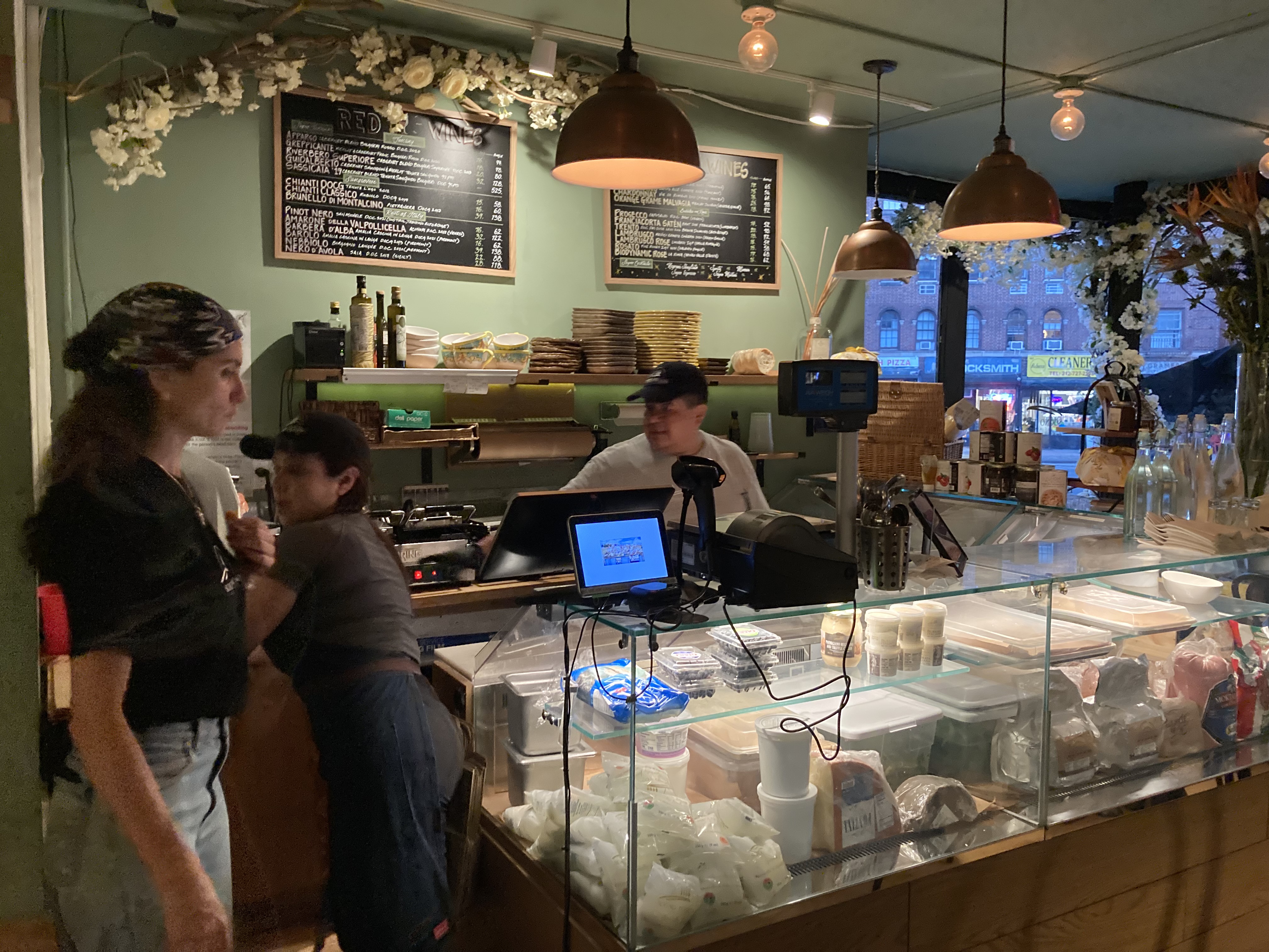 Sogno Toscano is also a market, although at times a somewhat frustrating one. The place is the offspring of the wholesaler Sogno Toscano, which supplies Italian food to restaurants. Nice looking bags of pasta and cans of tomatoes are placed just so, and there’s a glass case with salumi and cheeses of high quality, but you can see that the place wasn’t really set up to move groceries. The goods seem somewhat decorative. You can purchase freshly sliced mortadella, a chunk of guanciale, or a wedge of red wine–washed pecorino, but it’s often hard to find a waiter who has a minute for weighing, ringing up, and packing. Sometimes I give up on shopping and just sit down with a glass of Chianti and one of their excellent panini.