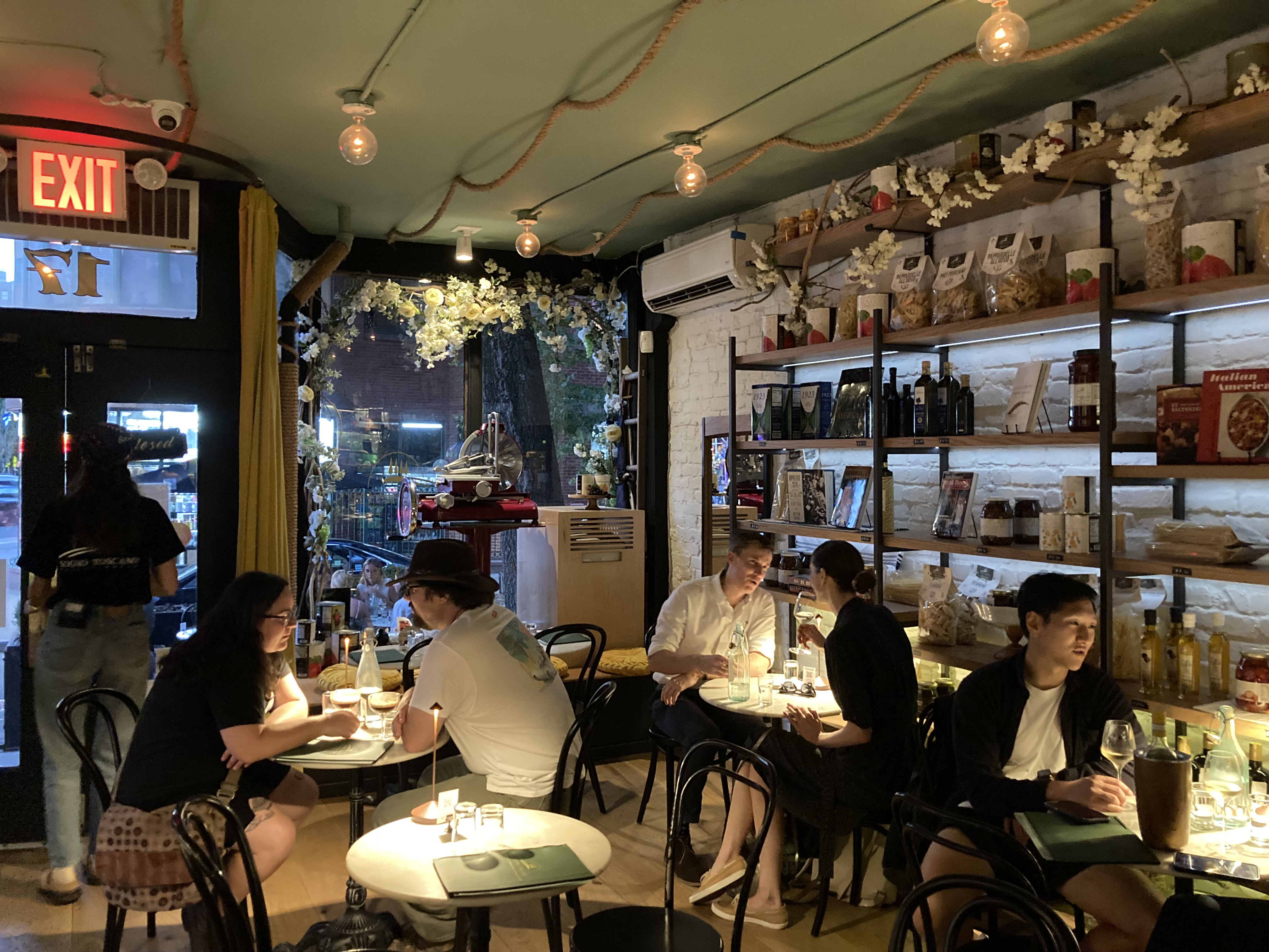 There are times when I want a thick Italian-American hero filled with tongue-numbing salami and provolone and dripping with vinegar peppers. And then there are times I’d rather have something more demur, a panino with a few thin slices of prosciutto, good olive oil, and maybe some spiky arugula, all on a thin, crumbly ciabatta. When I crave this more elegant type of sandwich, I often go to Sogno Toscano, in the West Village, a cozy but not at all cramped caffè a few blocks from my apartment. There’s a lot of light dusty green paint at Sogno, and they’ve got a classic green Vespa in the window, a prop that you’d think would give the place a Disneyland vibe but that somehow feels authentic there. The place has smooth white marble tables that are round and cool to the touch, lovely to land a glass of wine on. The caffè was built by Italians and is staffed mainly by Italians and filled with Italian clientele. It’s a good place to practice your Italian or, in my case, to display just how bad your Italian is.