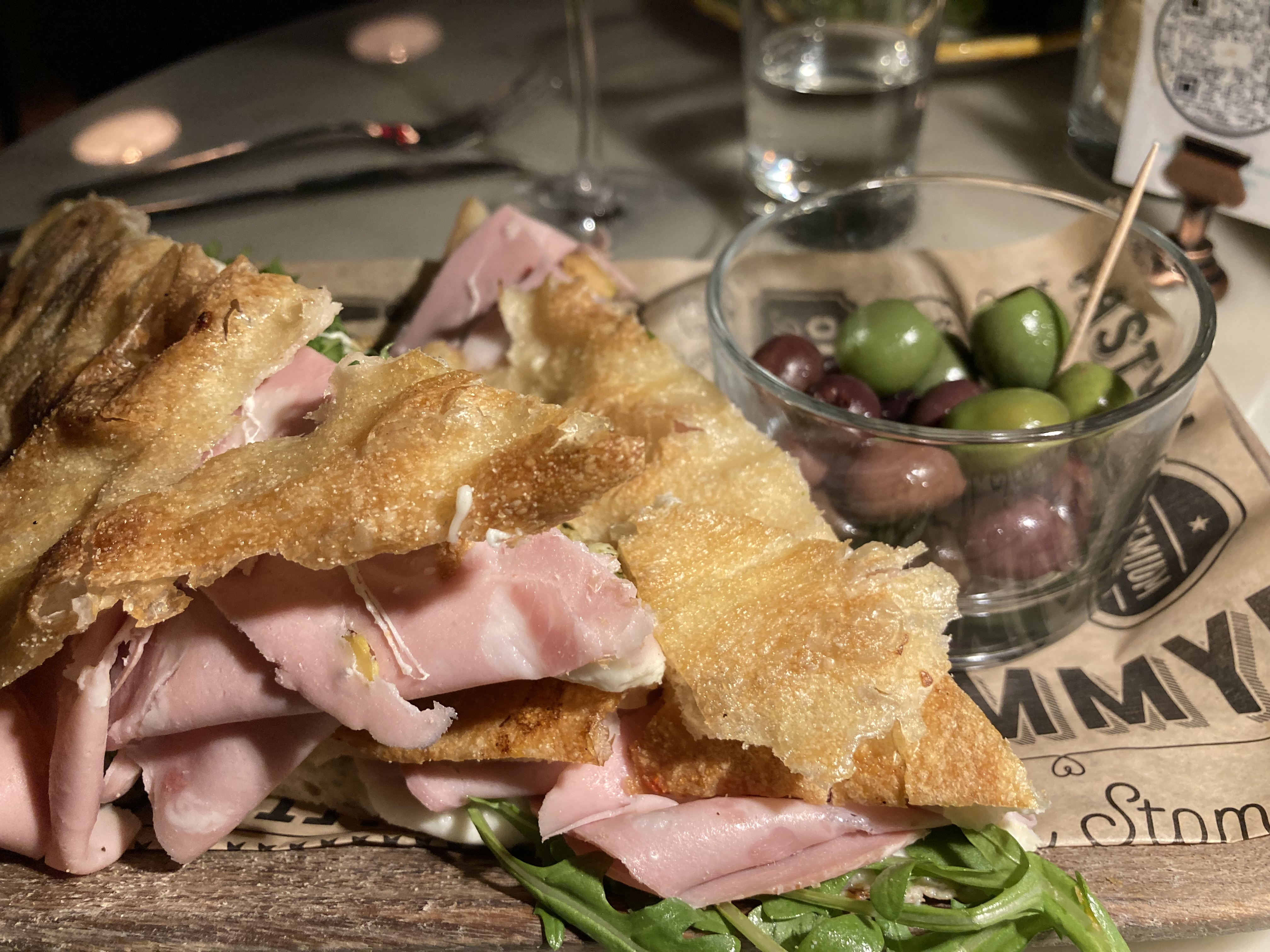 I often order a panino with mortadella, mozzarella, pistachio butter, and arugula. It’s really the perfect sandwich. I love the way the pistachio butter underlines the pistachio element in the mortadella itself. And Sogno’s bread is just the way I want it, crackling and oily.
