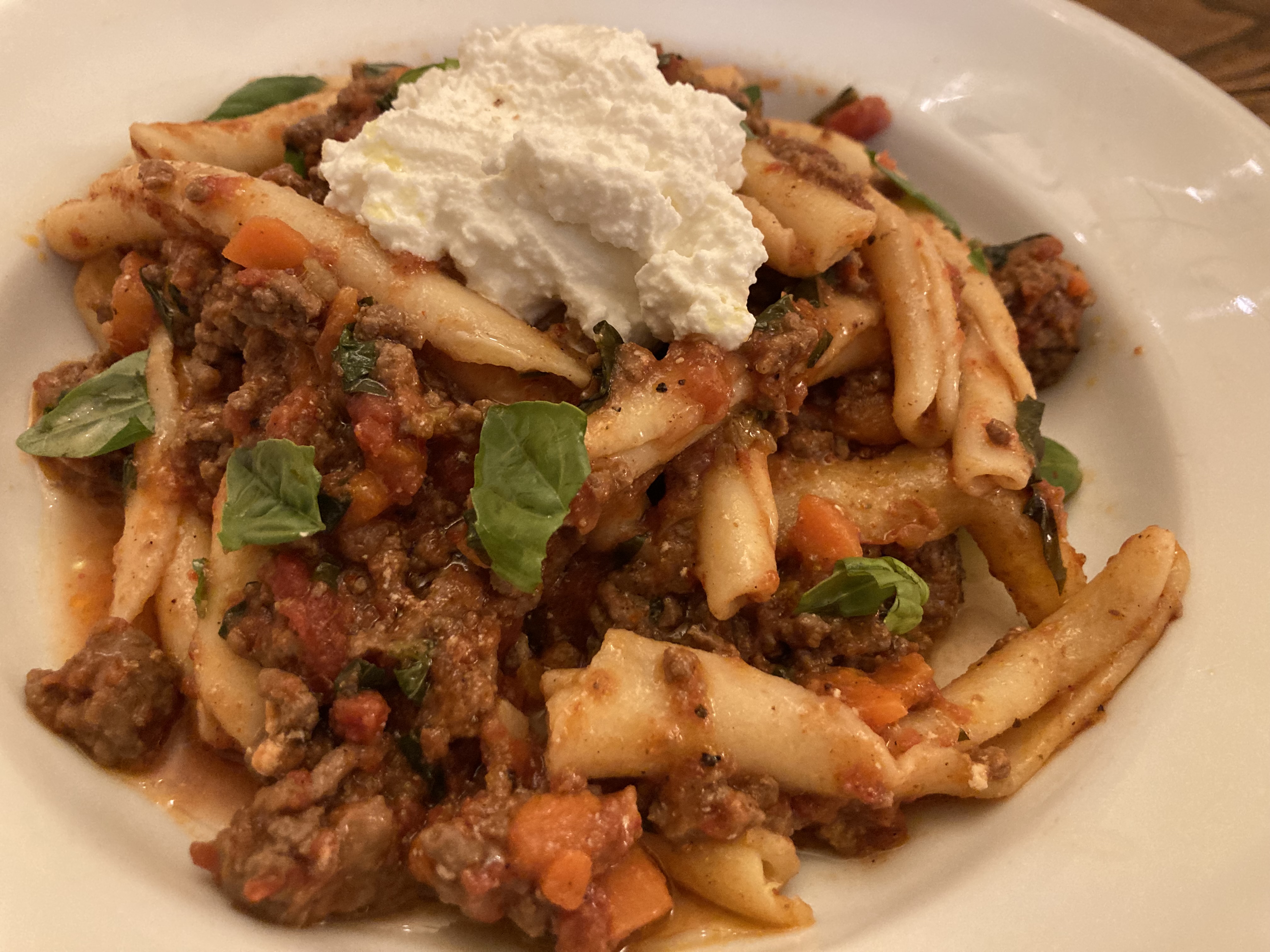Recipe below: Strozzapreti with Lamb Ragù, Warm Spices, and Ricotta