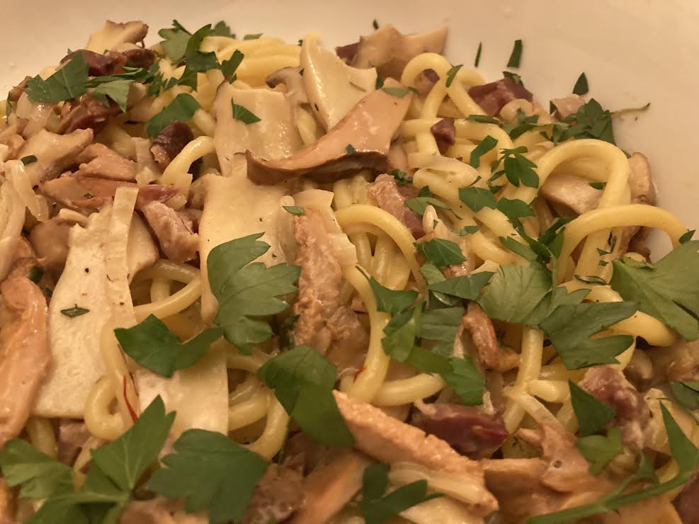 The past few weeks have been rough. Family problems have kept my cooking and writing unfocused. That’s just the way it goes sometimes. I had what I thought were a few good ideas for blog posts but they came out garbled. I’m letting them sit in their messed-up state for a future time when I hope I can look at them fresh. In the meantime, instead of one of my intriguing stories, I’m sharing with you a good pasta dish.